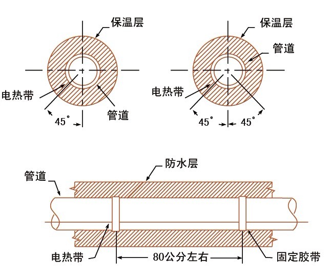 保溫層施工時(shí)應(yīng)避免損傷電熱帶。