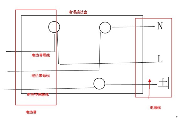 2、2電熱帶一定要接地,可將電熱帶屏蔽網與電源接線盒連接,如下圖: